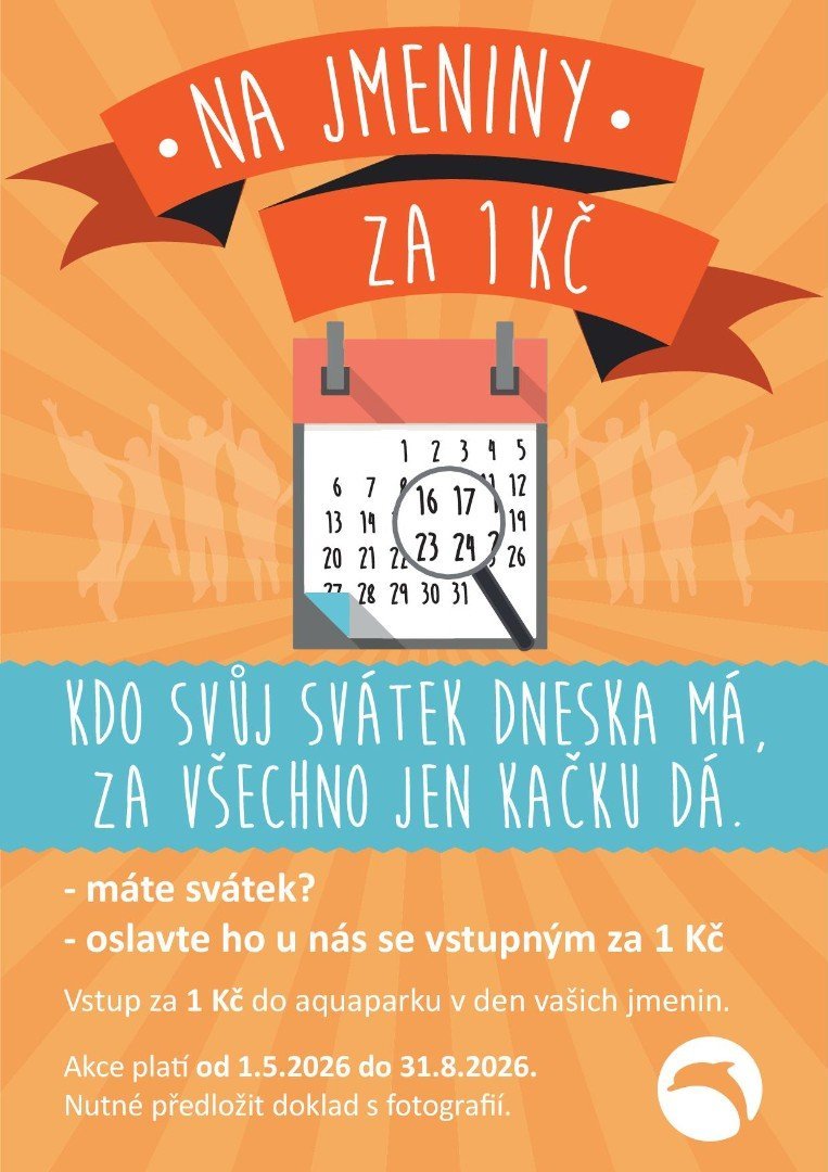 Na Vaše jmeniny máte vstup do aquaparku pouze za 1 Kč.